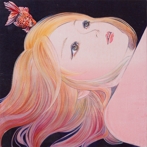 2023年 パネルに土佐和紙、水性木版、アクリルガッシュ、胡粉、水彩絵具、色鉛筆 530×530mm(S10)