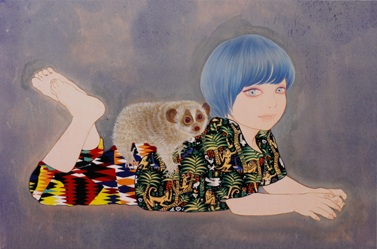 2011年 パネルに和紙、木版、アクリル、色鉛筆 910×730mm