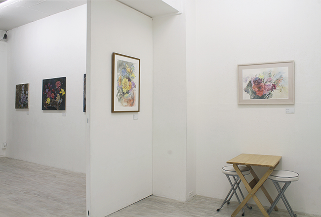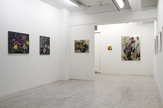 刻一刻と違う表情を見せる花たちを、絵の具の素材感や重厚な物質感を伴って表現し、静かに空間に寄り添う、そんな作品を展示します。
